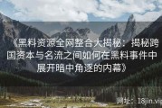 娱乐圈一直以来都是人们关注的焦点,明星们的每一次亮相、每一条微博、每一个跨界的举动,都能在短时间内引起轰动。而最近,关于“娱乐大咖跨界风波”的话题更是成为了网络上的热门讨论。尤其是在《黑料吃瓜网》上线...